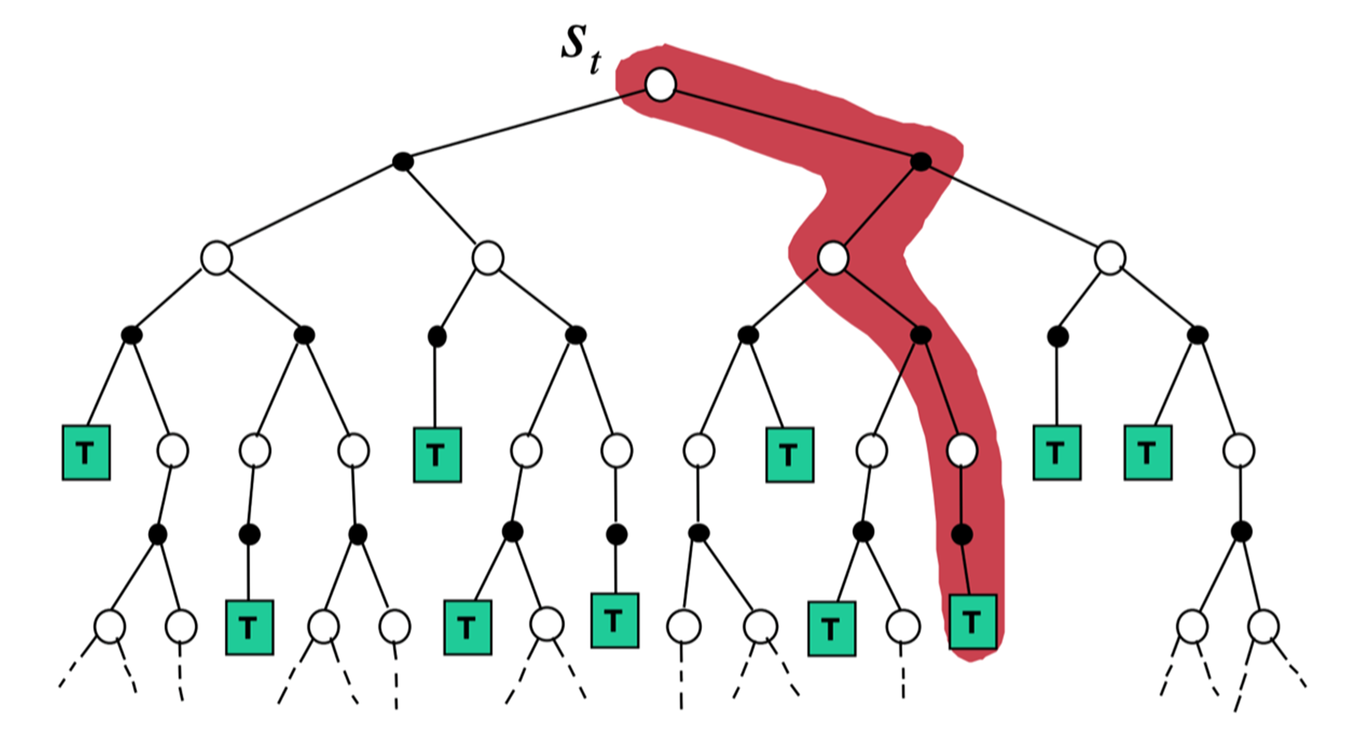 - 时序差分扩展深度,转化为蒙特卡洛(采样结束到达中止状态)。
