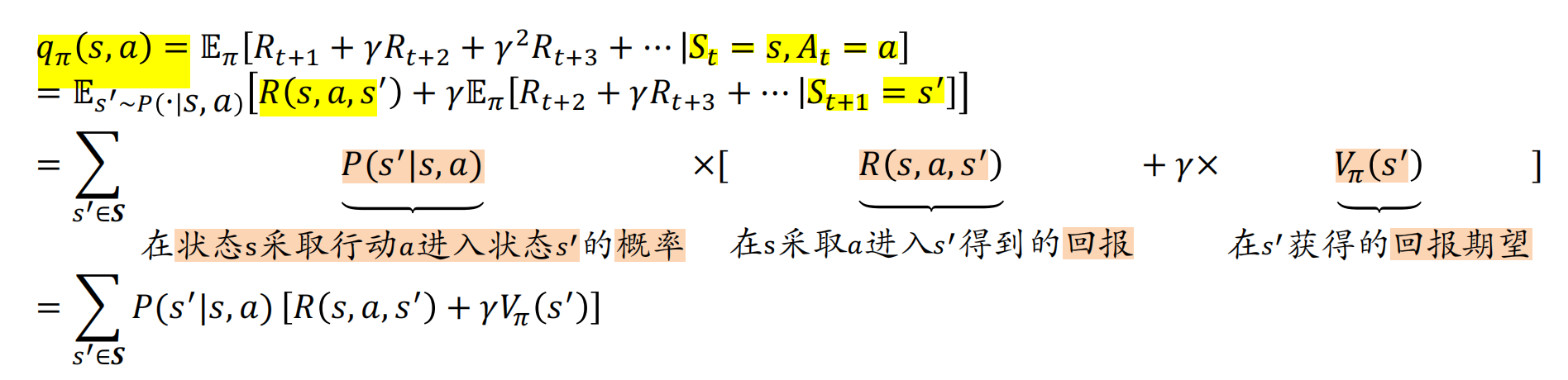 - 动作-价值函数取值同样与时间没有关系,而是与瞬时奖励和下一步的状态和动作有关。