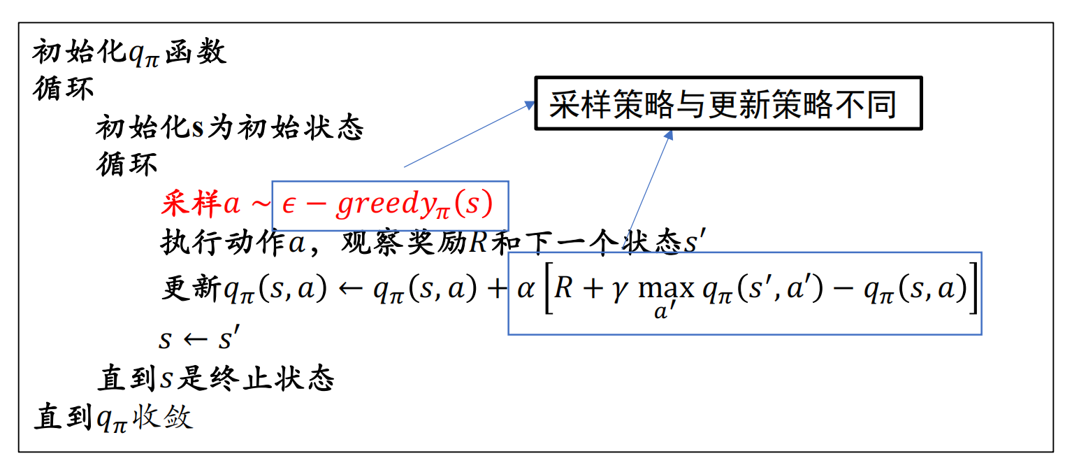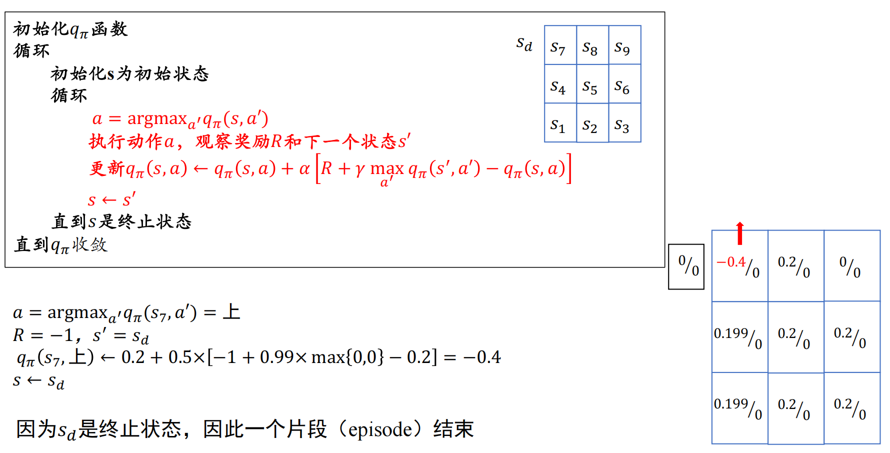 - 3.移至下一个状态s'(s'为终止状态时结束)
