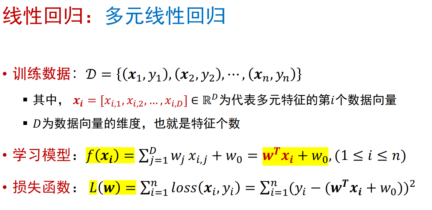 L(b,w)=sum(i=1~n)[yi-(w·xi+b)^2]. - 优化方法:最小二乘法,