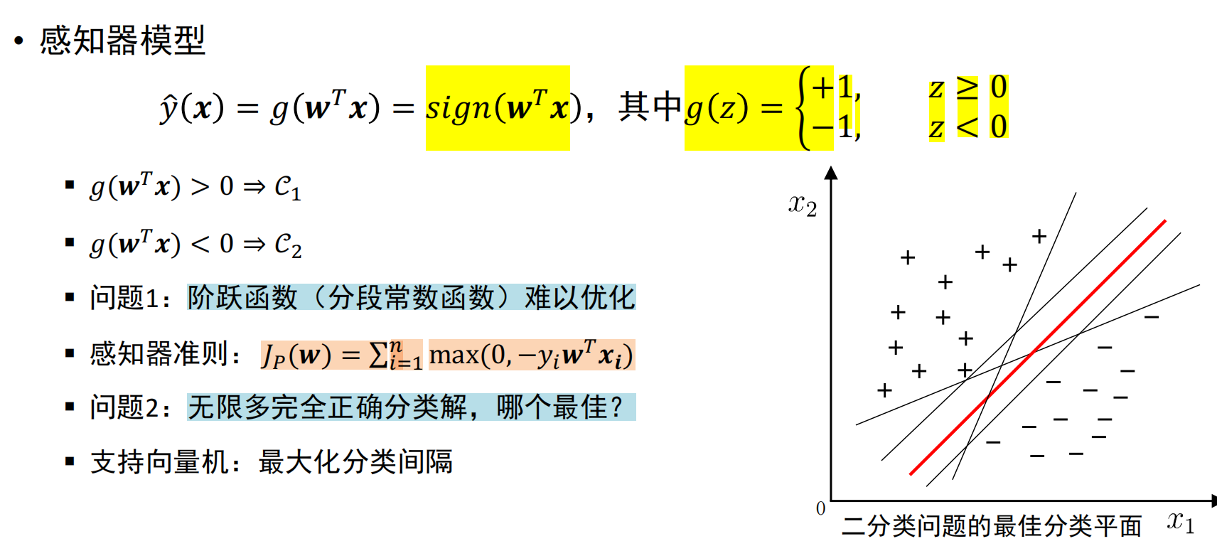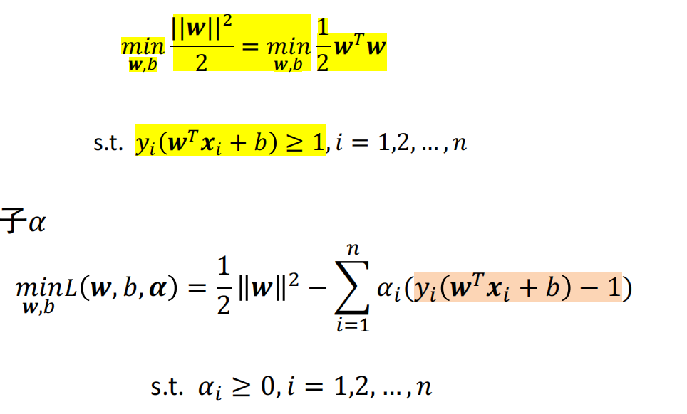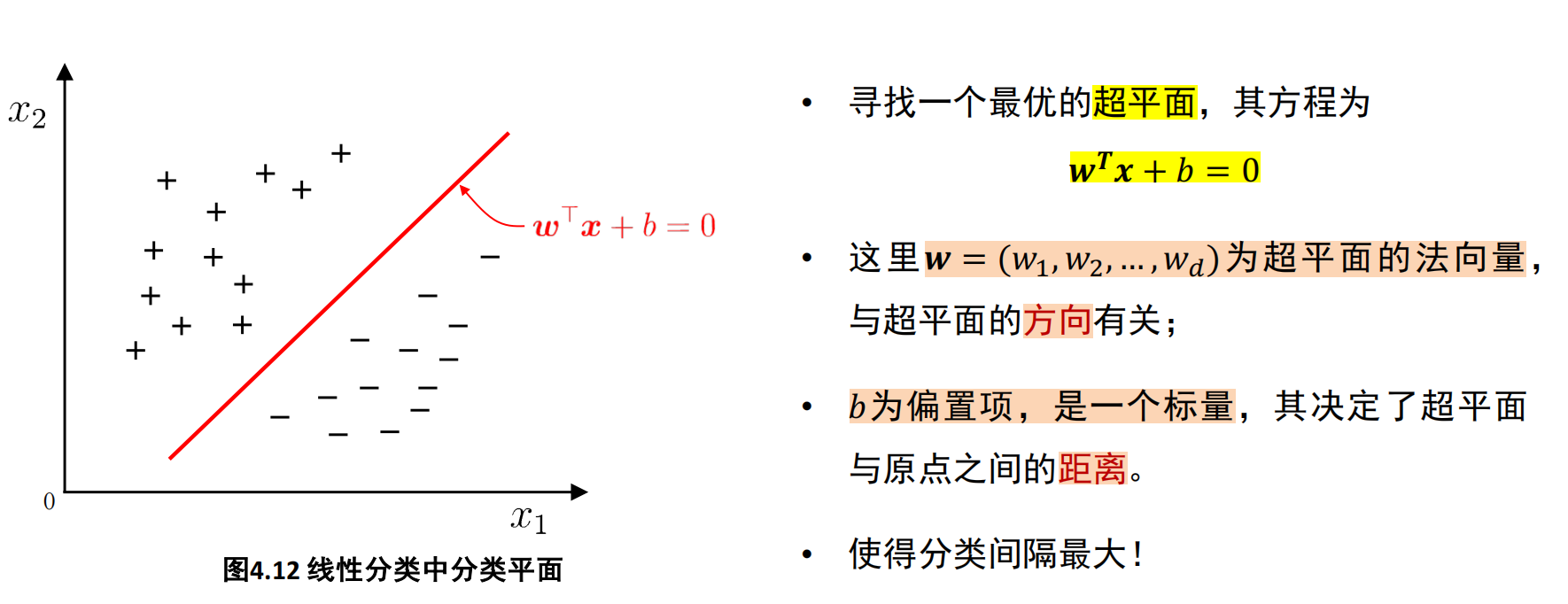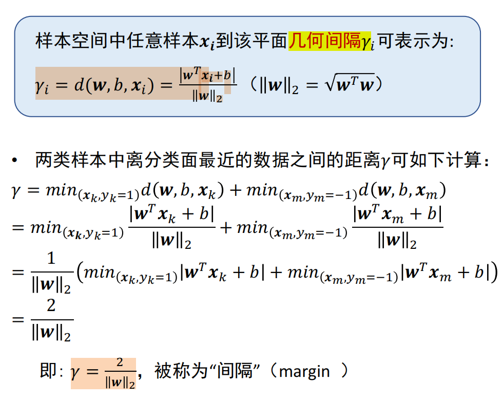 - 目标:最大化分类间隔(支持向量:与超平面距离最小的点)