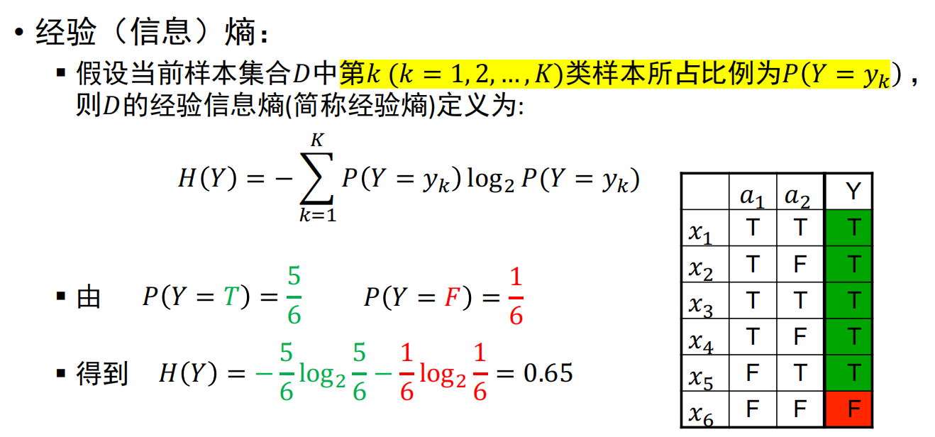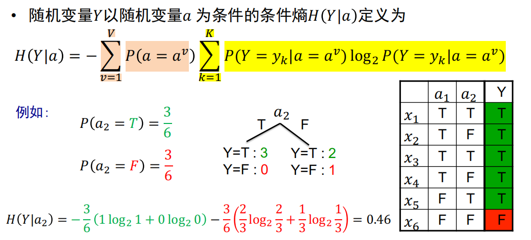 IG(D,a)=H(Y)-H(Y|a),划分前后信息熵的差值- 选择IG值最大的属性