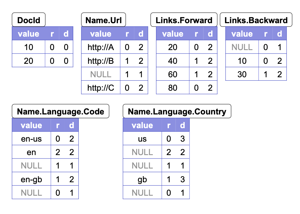参见:The striping and assembly algorithms from the Dremel paper
