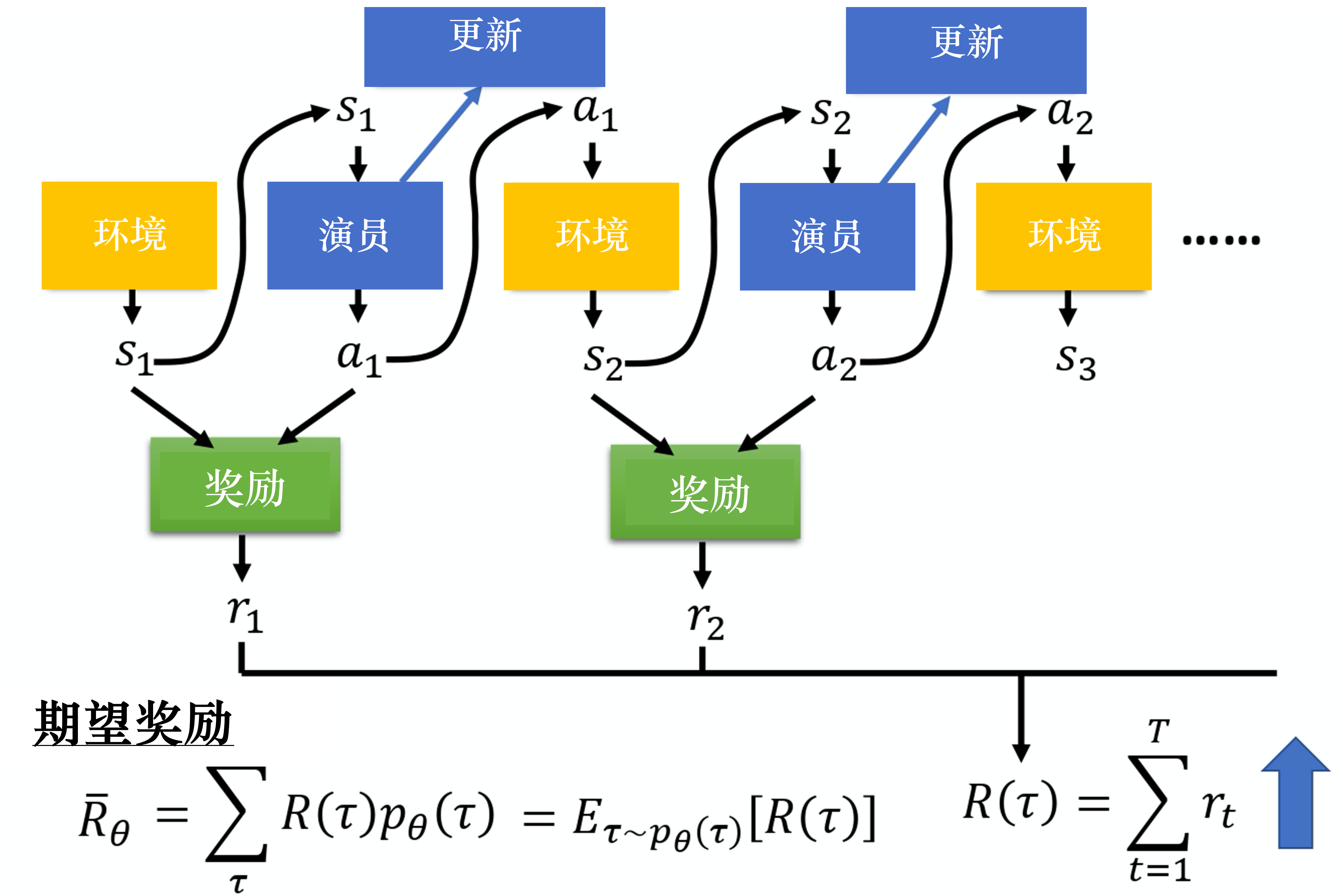 使用梯度上升最大化期望奖励: