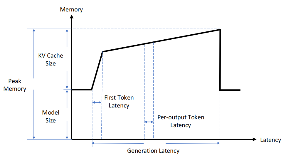 decode阶段:通过自回归方式,逐个生成后续的token,尽管单步计算量小,但生成每个新token都需要反复访问之前生成的所有token对应的KV Cache。主要使用TBT/TPOT衡量。