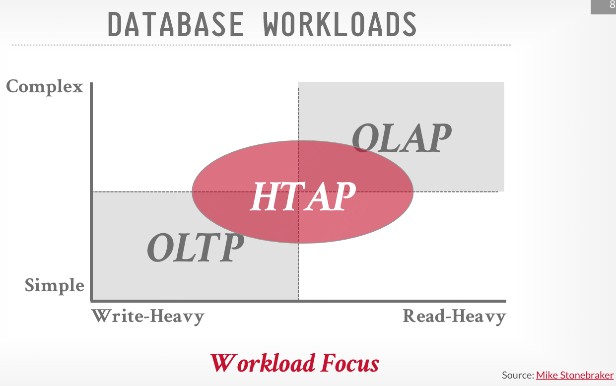 OLTP 和 OLAP 工作负载在同一数据库实例中共存。