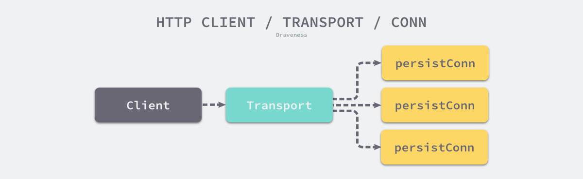transport 中维护了一个空闲连接池 idleConn map[connectMethodKey][]*persistConn,其中的每个成员都是一个persistConn对象(即一个具体的连接实例,包含了连接的上下文),会启动两个 groutine 分别执行readLoop和writeLoop;