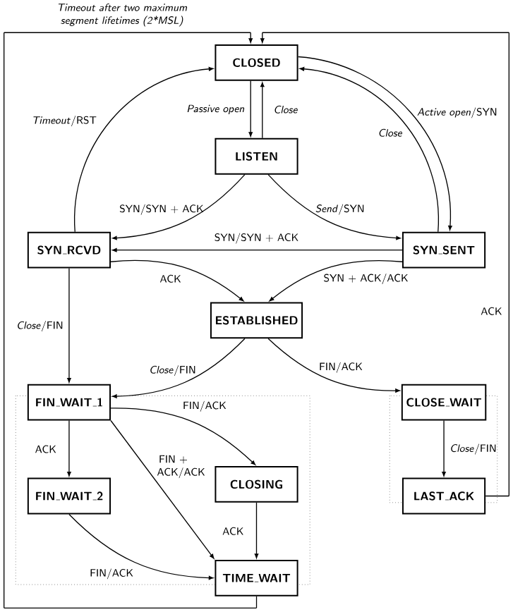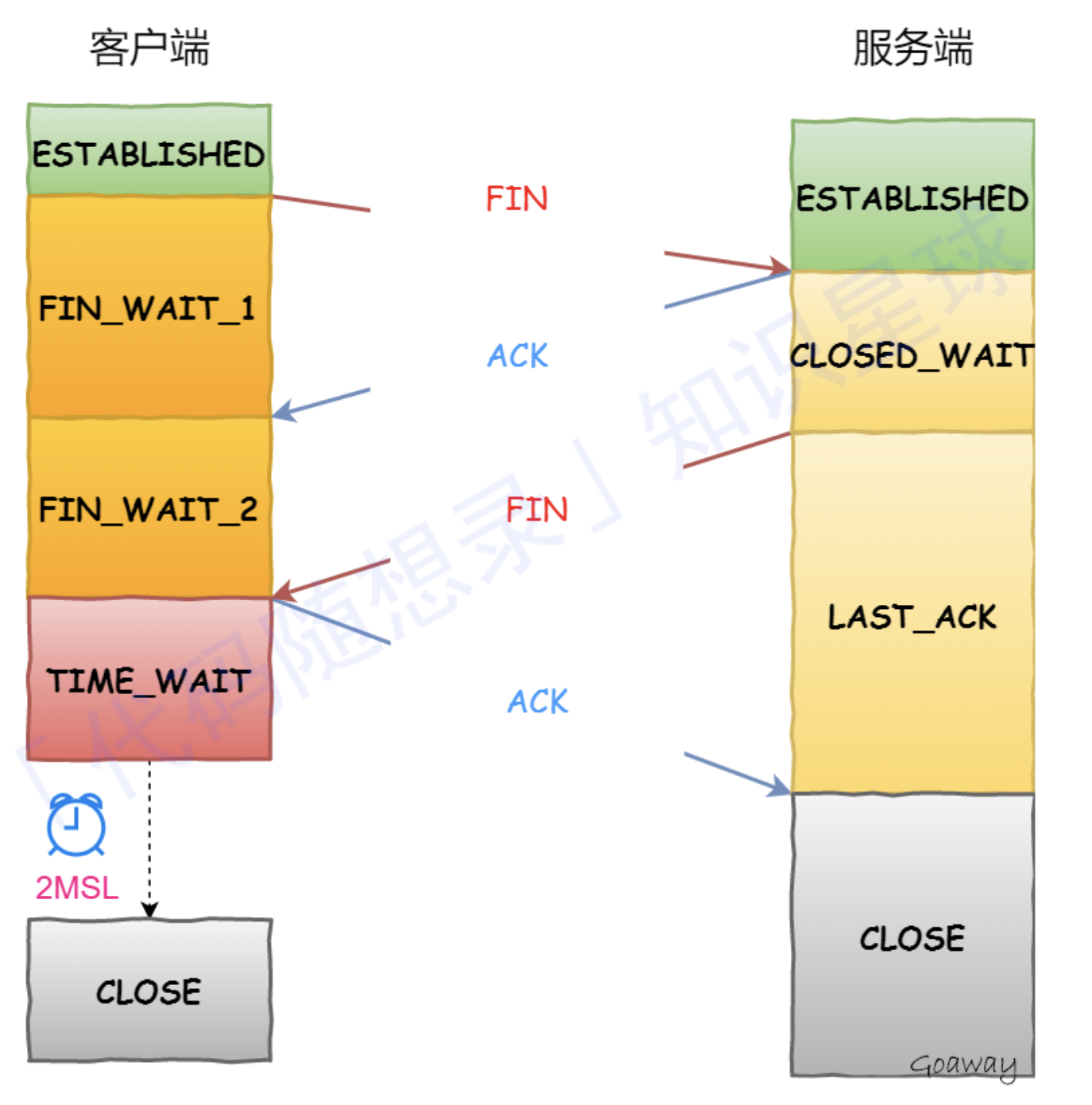 - 客户端等待 2MSL 时间后,⾃动进⼊ CLOSE 状态,完成连接的关闭。