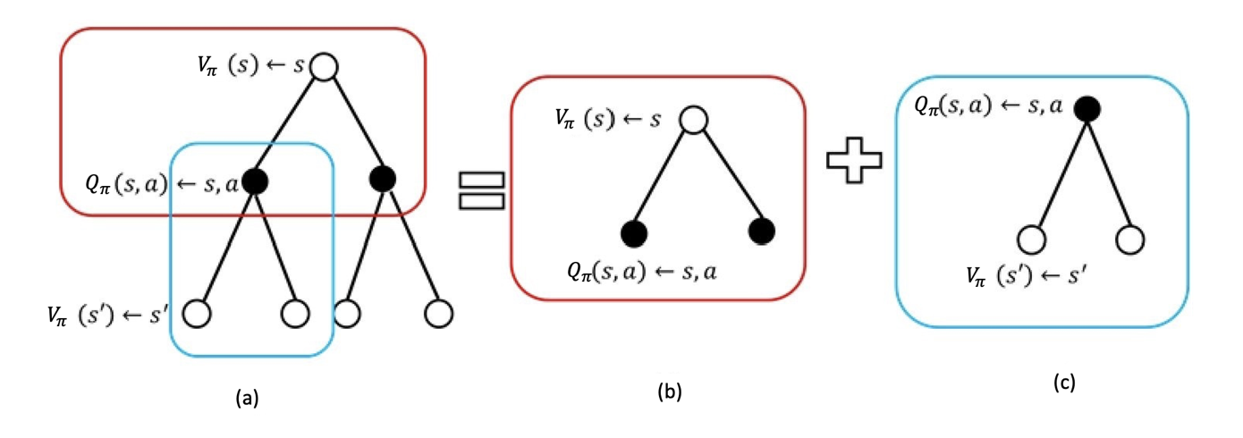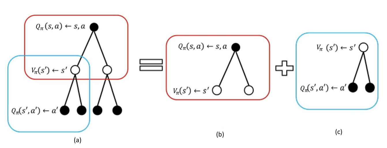 - 当前时刻的Q函数与未来时刻的Q函数之间的关联:(代入\(V_\pi(s')\))