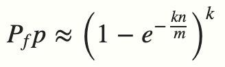 对于给定的 m 和 n,使假阳性概率最小的 k 值为: