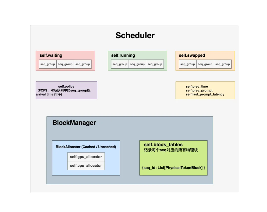 - 调度在下一次迭代中执行的序列,以及需要交换、复制或移入/移出的 token 块: